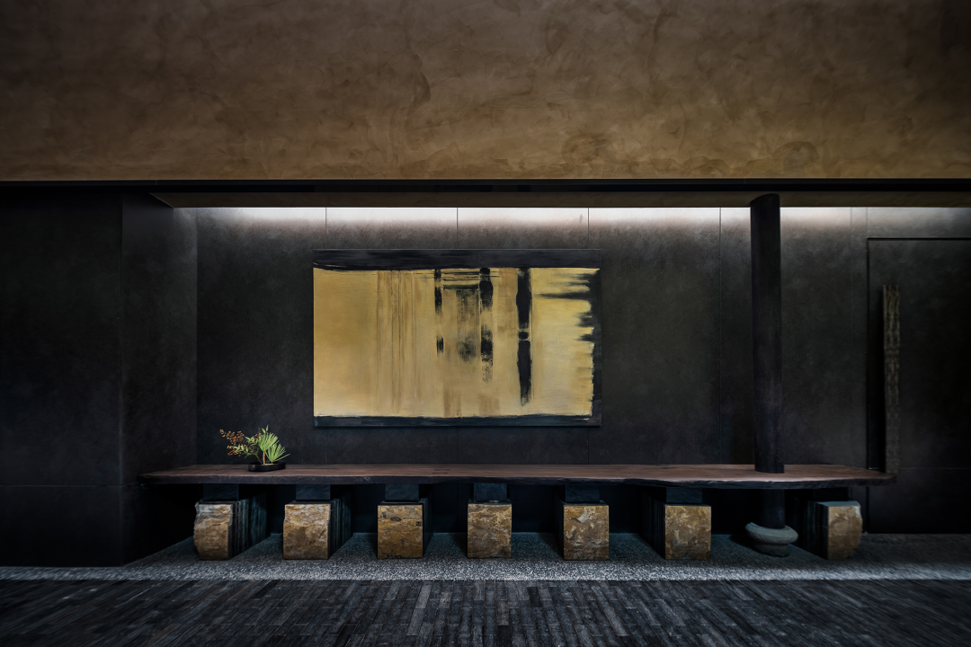 此处本身就有一处小庭院,设计师以枡野俊明大师的枯山水作庭理念为指引,通过呈现深山中绿树环绕的景致,让这里成为都市里的一处遁世之所。