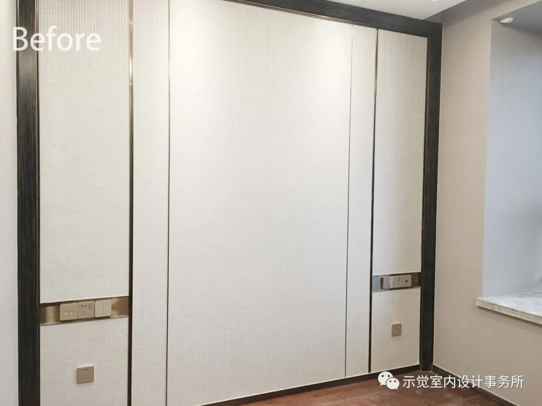 每个卧室空间的设计,是最为微妙的。从室内肌理至家饰软件,到各具性格的自然色系,在简约的曲直场景中,加上中意的风格摆件,重现屋主内心深处的归属模样。这里不仅是主人的隐私空间,也是代表着屋主的品味喜好,原主卧空间很小,背景墙和窗帘盒做在一起,常规床+床头柜配齐后会显得非常拥挤。
