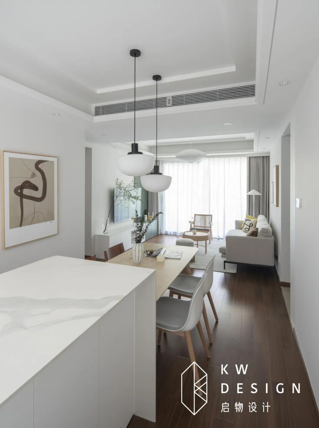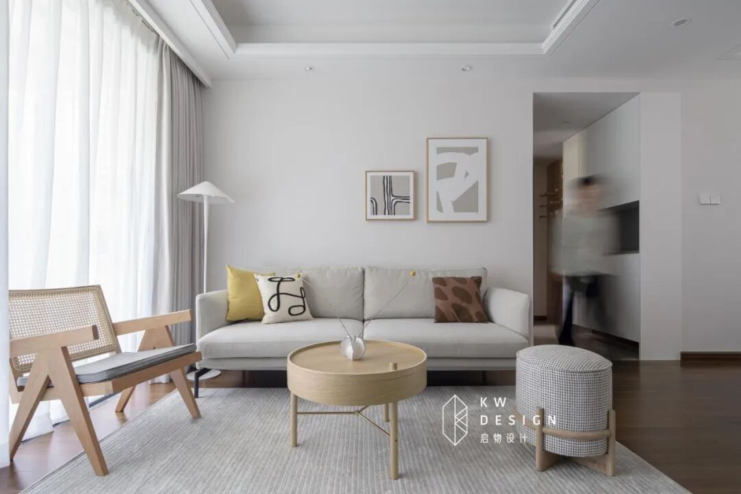 进门映入眼帘的是一个四面通达,时有微风萦绕的空间。米色墙面既别致又充满生活的质感。大面积木质家具,浅灰色,白色家居用品的采用既清爽又有温润质感,整体简单浅色设计能将光线最大化的引入室内,让低楼层也告别昏暗。
