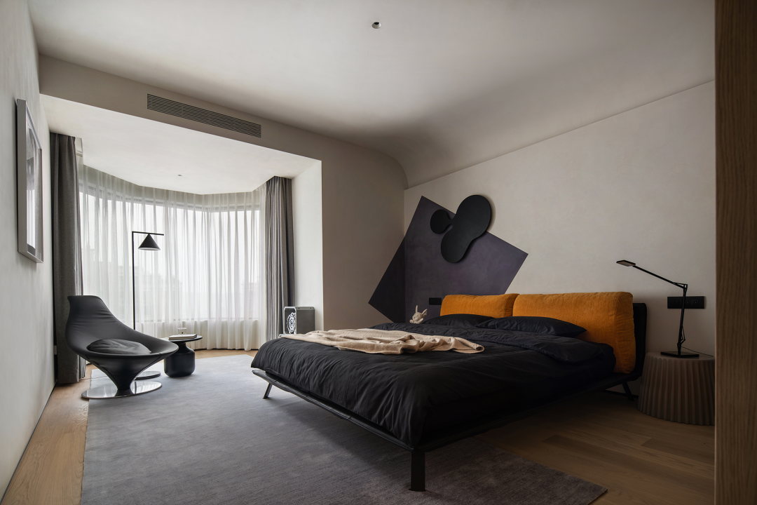 “湖光林色”弥漫着卧室空间,以简洁、柔软为基调, 泛起淡淡的雅致与宁静。温暖亲近,惬意舒适,空间的留白给人一种静谧的安定感,卸下都市喧嚣的繁华,歇息疲惫整日的身心,匆匆瞥过时光的留白。